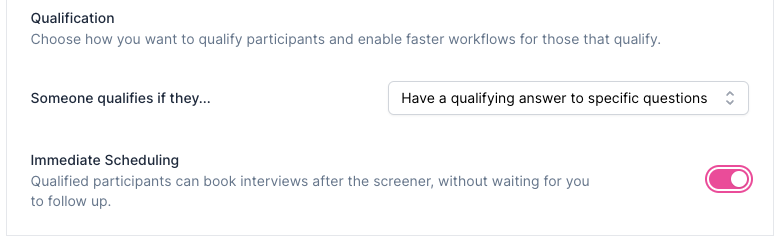 Immediate Scheduling: For Interview Studies, enable 'Immediate Scheduling' to automatically direct qualified participants to the scheduler page to book time.