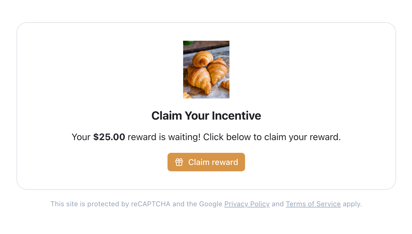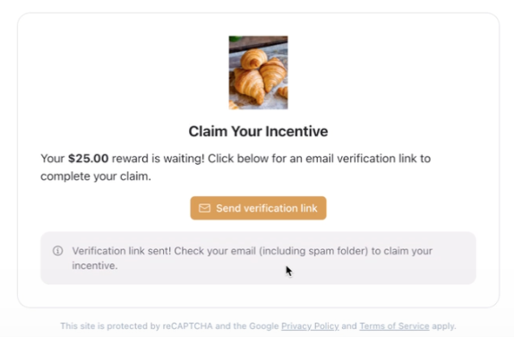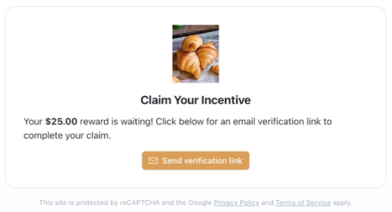 When you send an incentive email to a participant, they receive an email with a secure link to claim their reward.