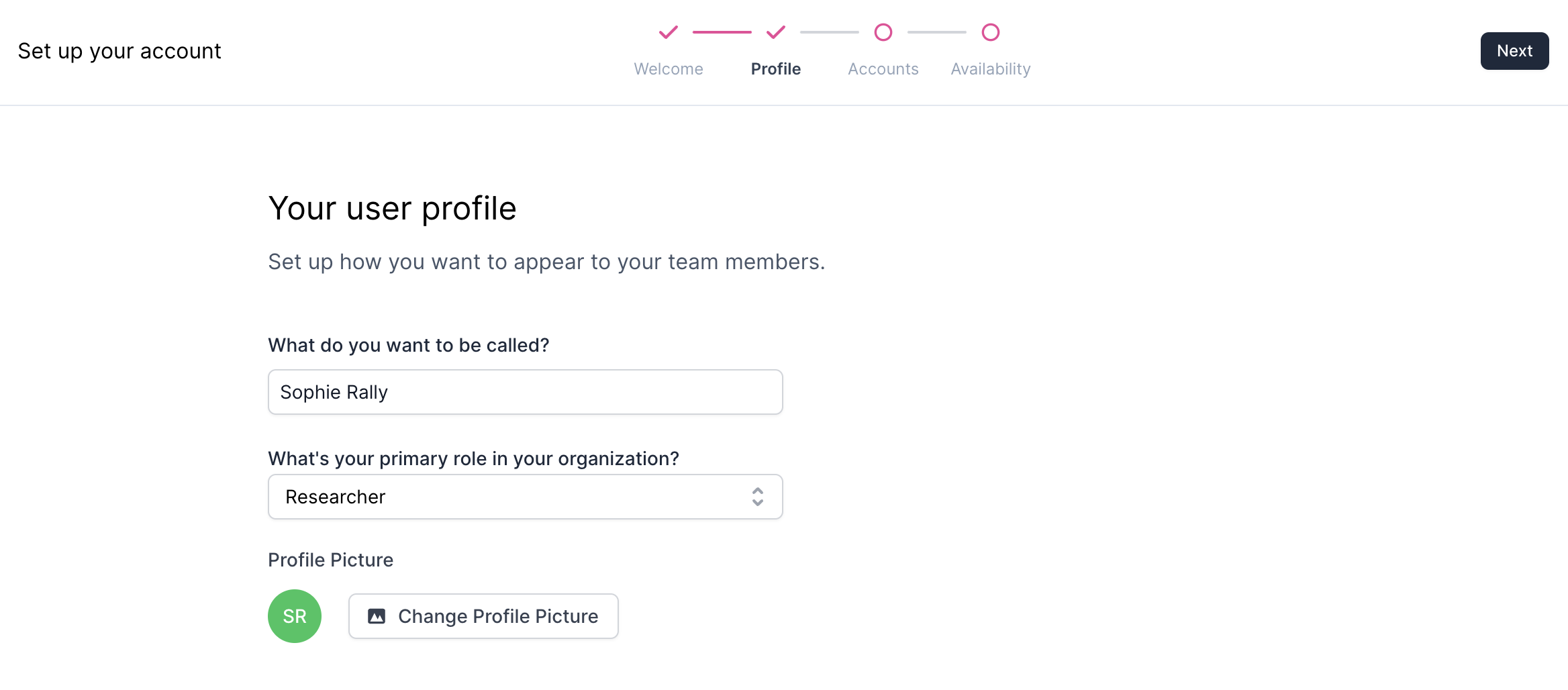 User Profile: Share your name and primary role, and upload a profile picture.