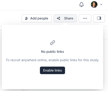 If public links have not been turned on for a Study, you'll have the option to 'Enable Links' to edit the Study and enable this feature.