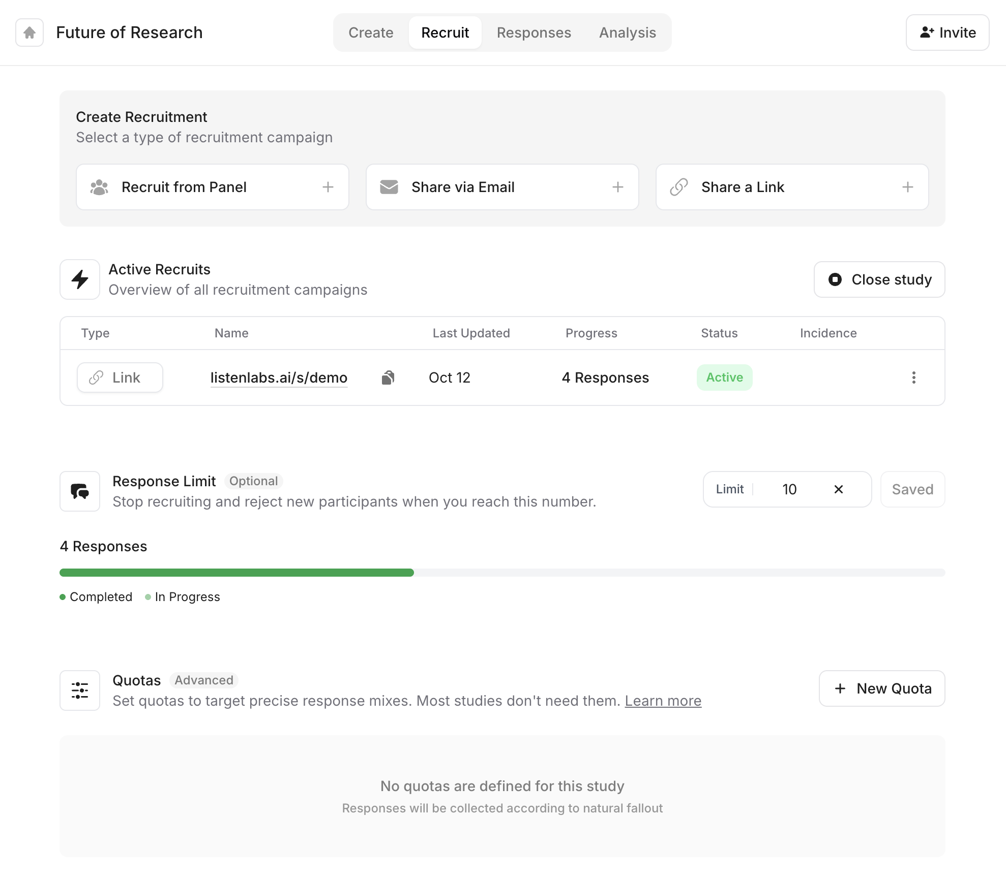 In Listen Labs, go to any project and click on Recruit and then copy the Shareable link.
