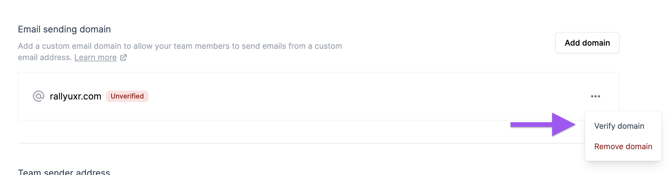 3. Under the Team Sender Address section, select Add Sender.