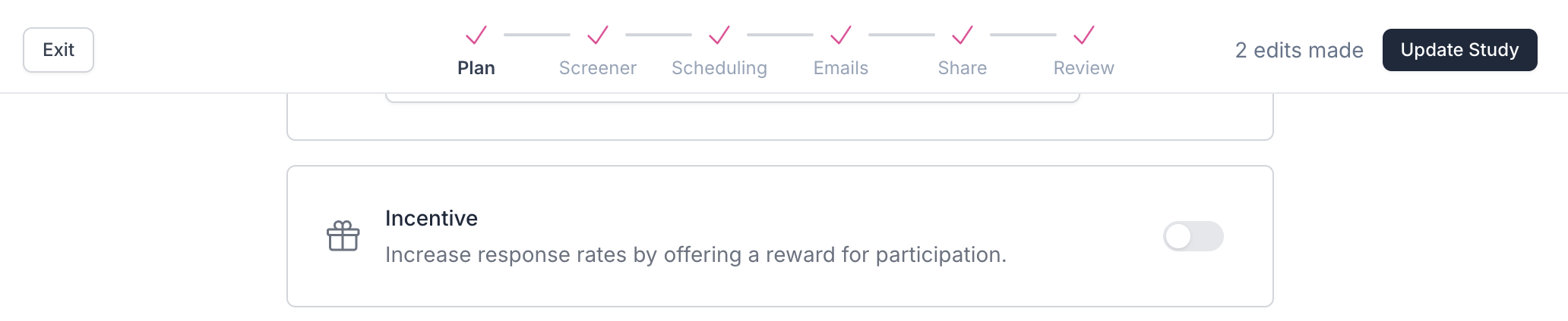 To send incentives to participants, first enable incentives on the study.