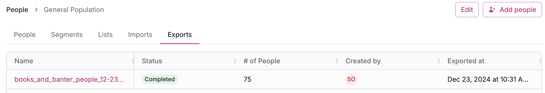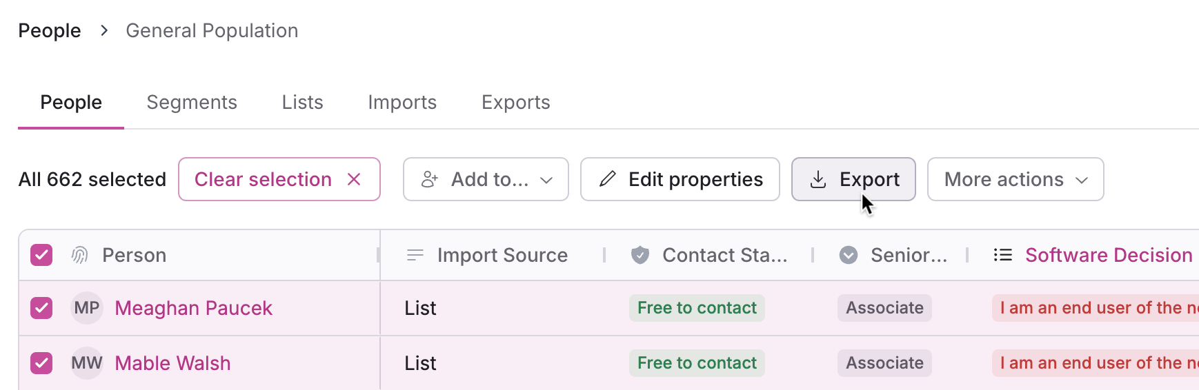 People - Open a population or database, or select a segment or list within.