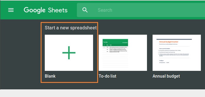 Go to Google Sheets and select the 'Start a new spreadsheet' button.
