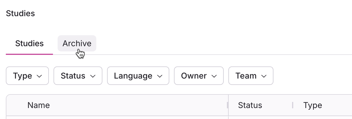 Navigating to your studies page and select the Archive tab at the top to view all archived studies.