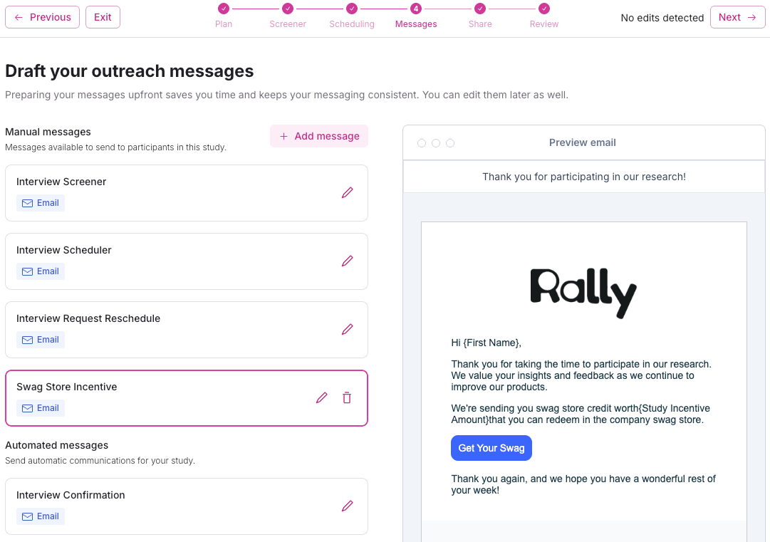 Pull the custom incentive email template into your study or study templates as a “Custom Manual Message”