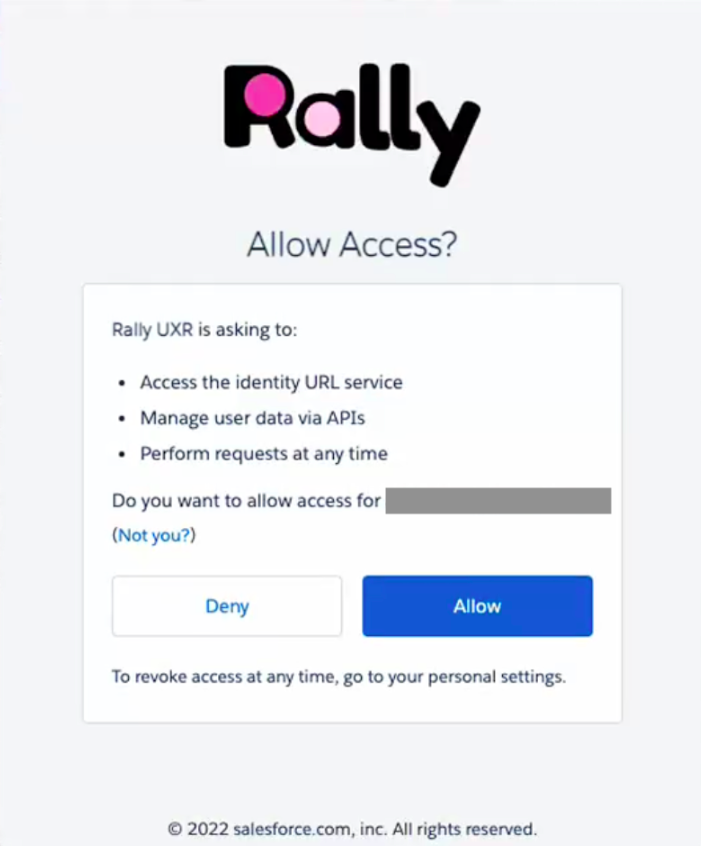 Grant Rally the following required permissions by selecting Allow: