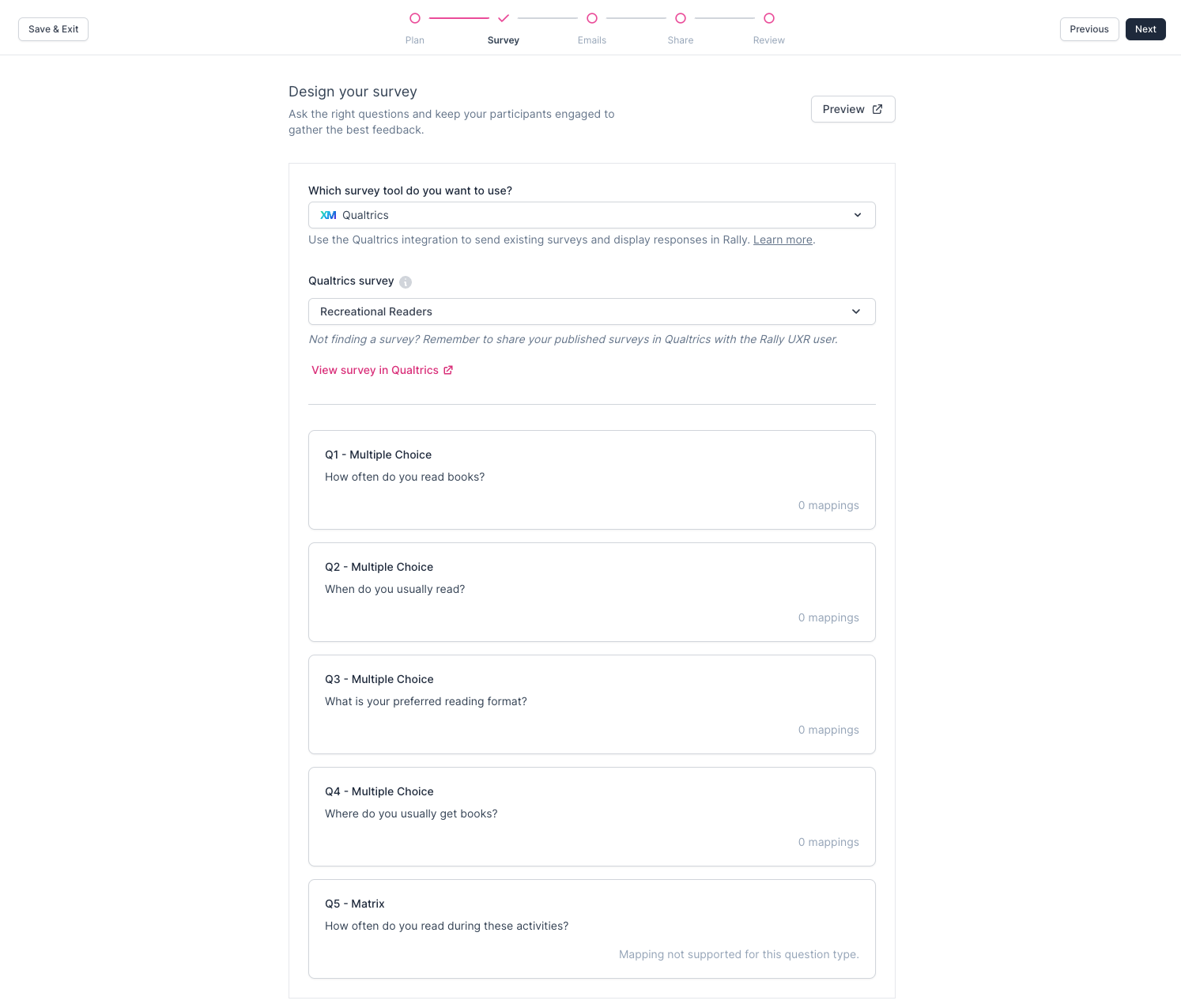 Voila! Your Qualtrics survey is ready to be used in Rally.