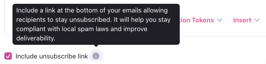 Unsubscribe Link: Include a link at the bottom of your emails allowing participants to stay unsubscribed. 💡 We recommend enabling this feature to help you stay compliant with local spam laws and improve email deliverability.