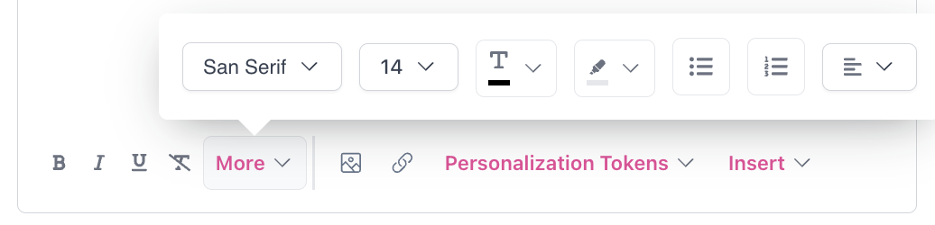 Email Body Formatting and Customization: Use the toolbar at the bottom of the Email Body field to customize your emails using our many options.