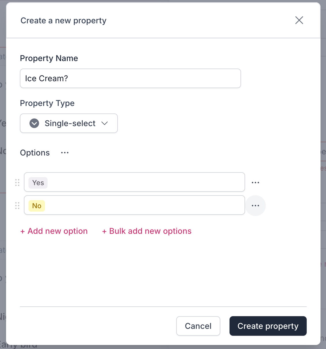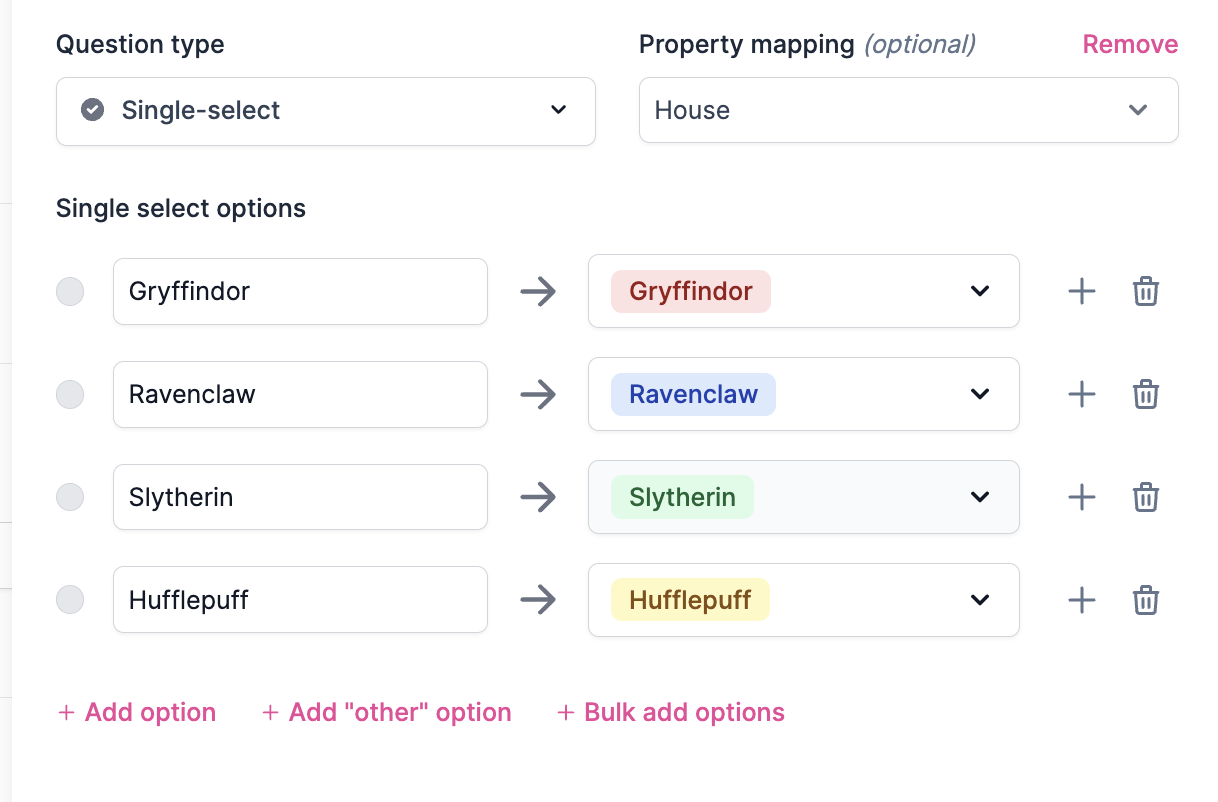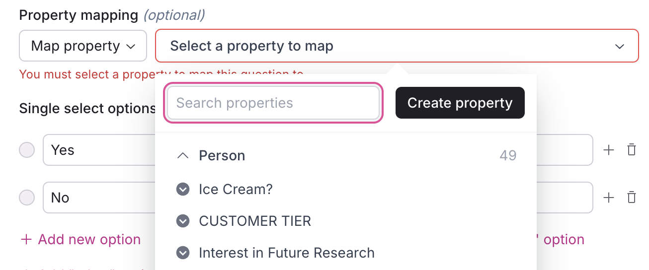 If the selected property has options, map each question option to the corresponding property option, or create new options as needed.