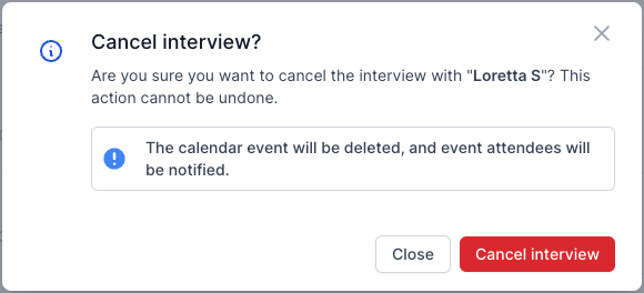 Canceling an interview is an irreversible action. Use caution before confirming.