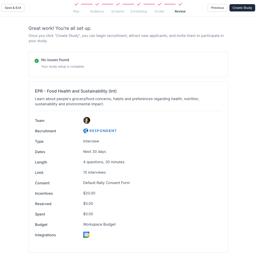 In Rally: Create an Interview Study with Respondent Recruitment.