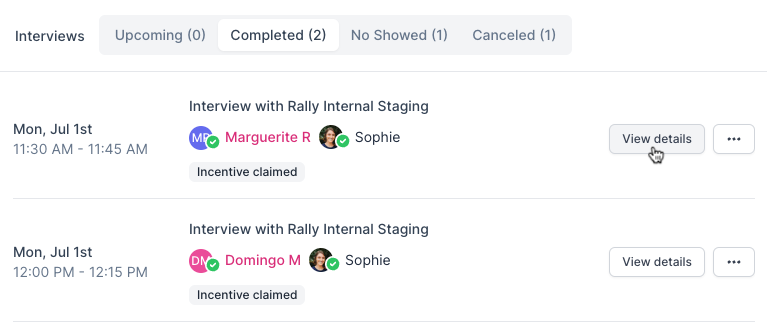 In Respondent: Invited applicants schedule interviews with Rally.