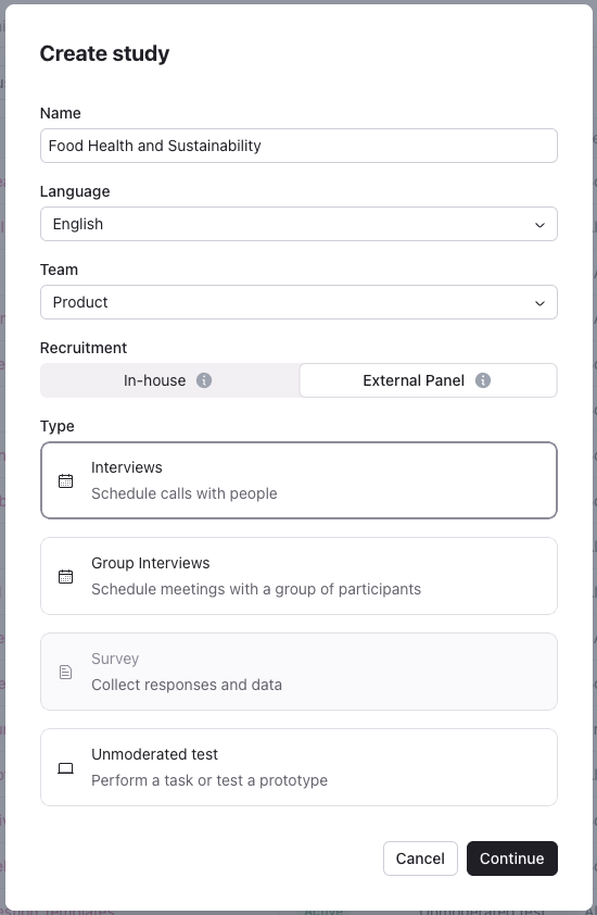 Create an Interview Study + Recruit from External Panel